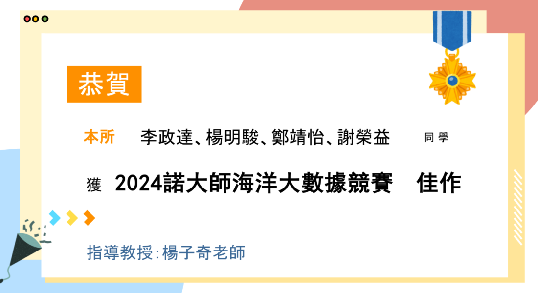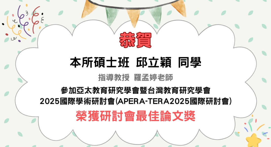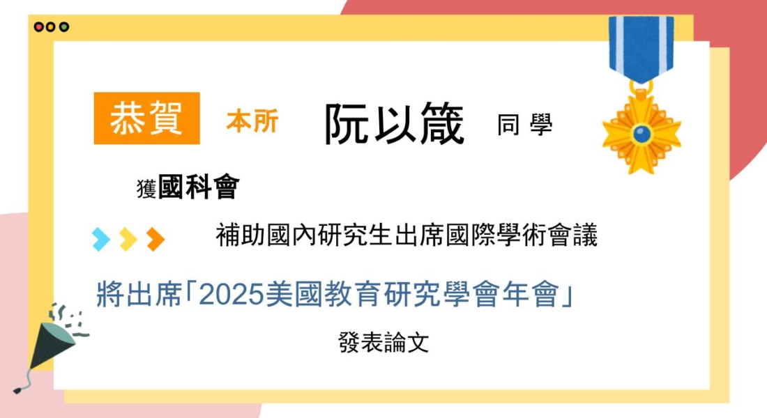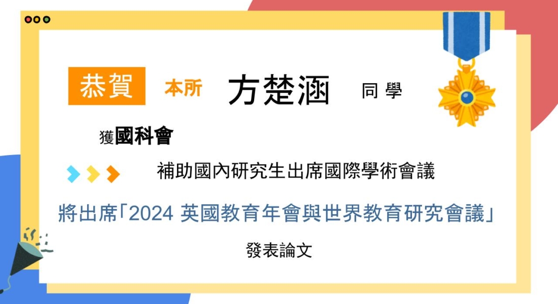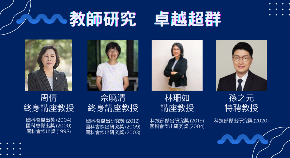 - 本所師生比低,致力提供豐富且多元的課程,教學成效優異,多位教授獲本校傑出教學獎。