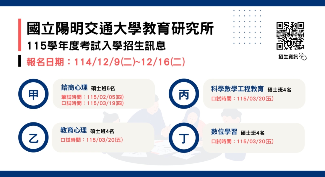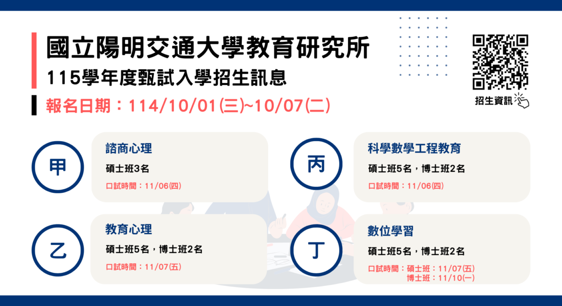 115學年國立陽明交通大學教育研究所碩博士班甄試入學口試時間公告
