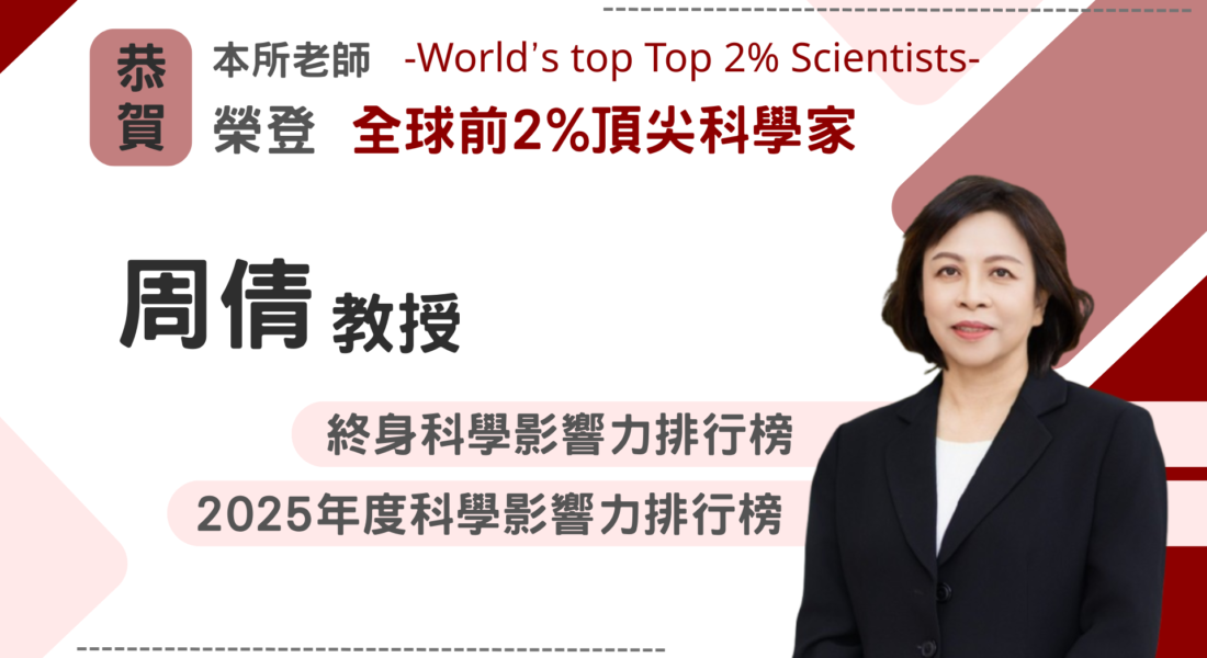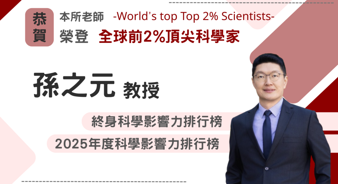 恭賀本所老師榮獲 2025年「全球前2%頂尖科學家(World…