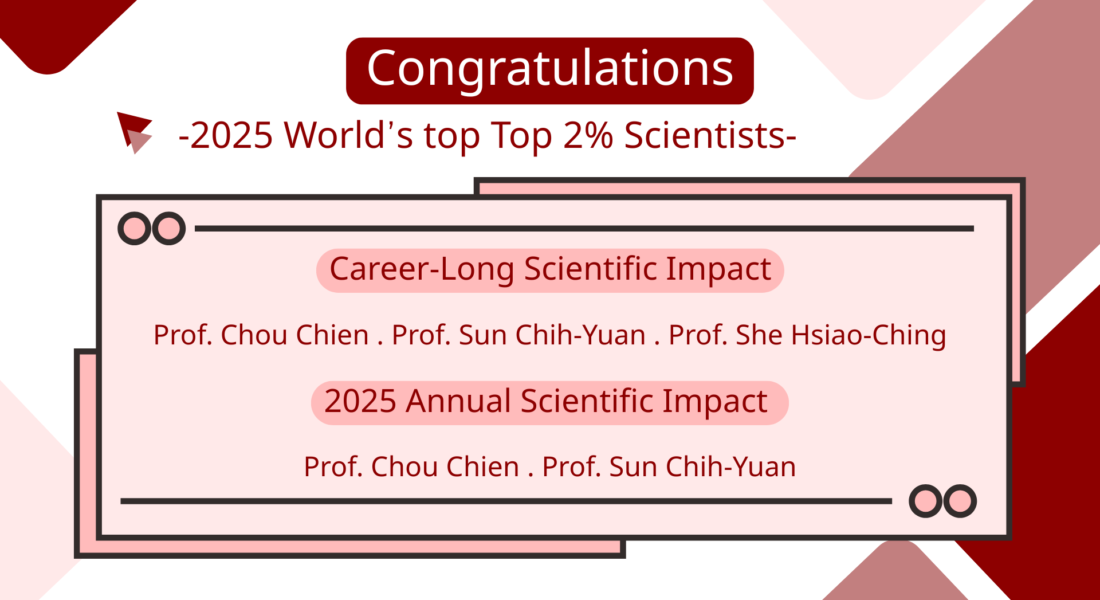 恭賀本中心周倩、佘曉清、孫之元老師榮獲2025年「全球前2%頂尖科學家(World’s Top 2% Scientists)」